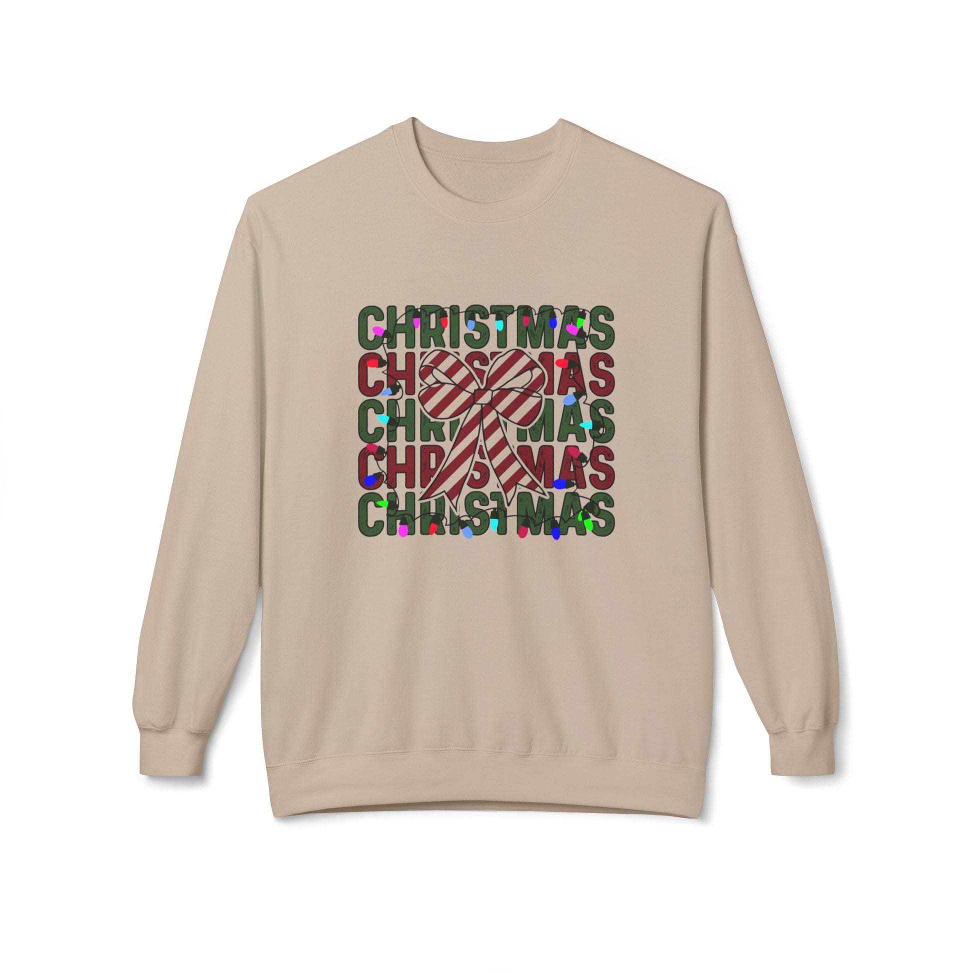 Christmas Candy Cane Midweight Crewneck, Unisex Holiday Sweatshirt Featuring Christmas Coquette Bow