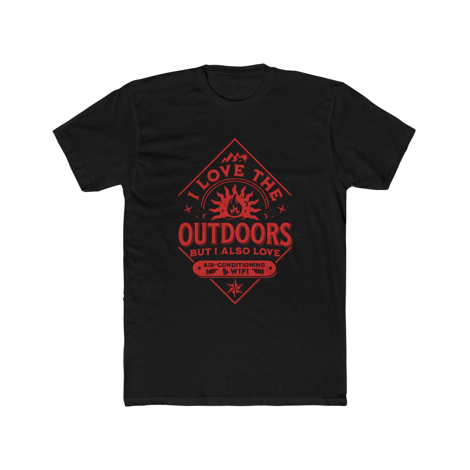 Camping, Air Conditioning, and Wifi t-shirt for the outdoorsman who isn't really outsdoorsy but likes to pretend! This premium fitted short sleeve is a classic choice that is both comfy and light. The high quality print adds a statement to that man in your life's everyday attire.