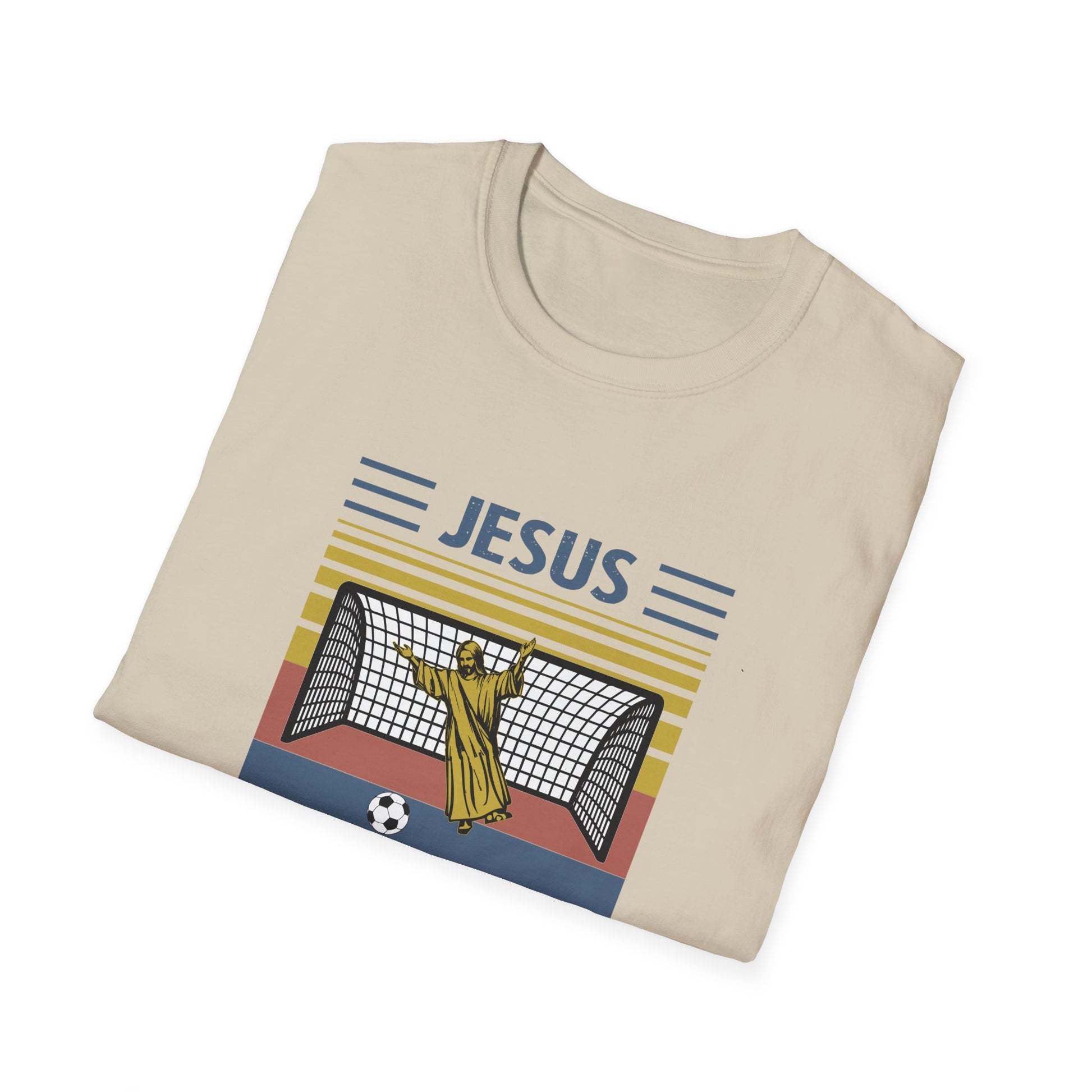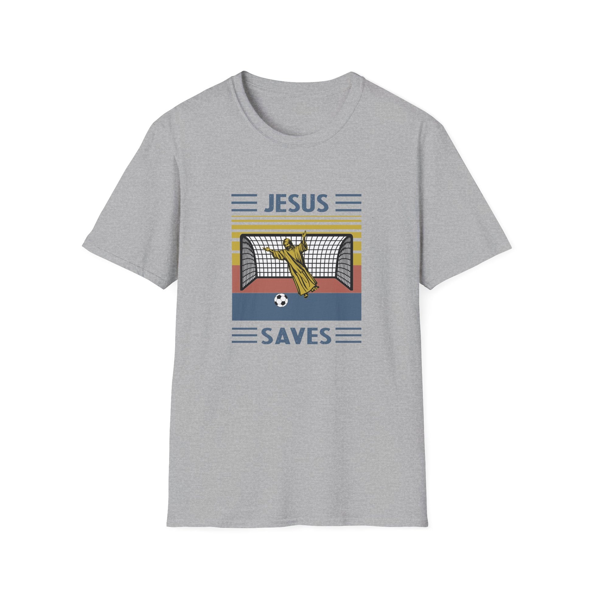 This Jesus Saves unisex soft-style t-shirt puts a new spin on casual comfort and Jesus. Made from very soft materials, this tee is 100% cotton for solid colors. Heather colors and sports grey include polyester. The shoulders have twill tape for improved durability. There are no side seams. The collar is made with ribbed knitting to prevent curling damage.