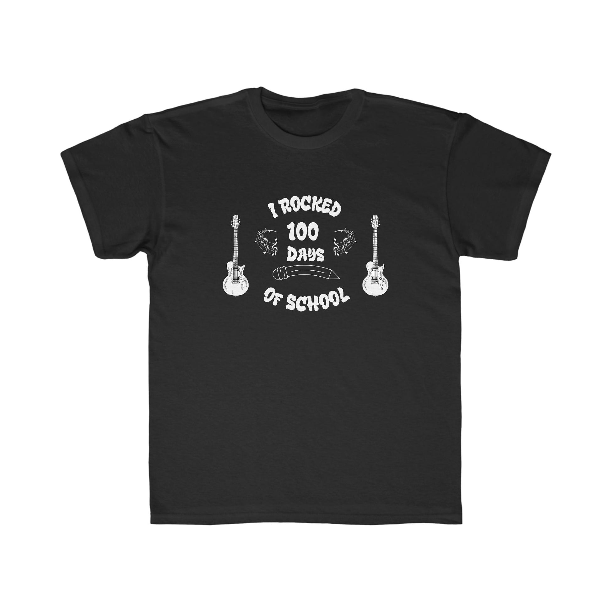 I Rocked 100 Days is the tshirt for the musician in your life! FRONT ONLY Design, this youth tee was created for my son who loves music! Much like music, we wanted to share it with the world for 100 Days. FRONT ONLY DESIGN