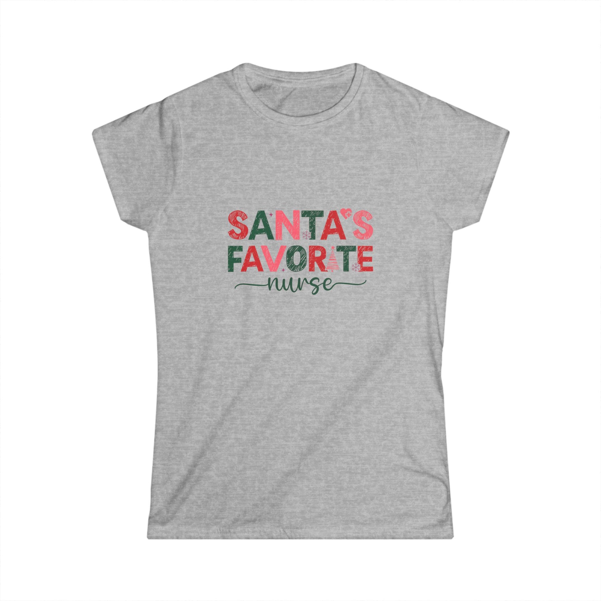 Santa's Favorite Nurse TShirt, Christmas Softstyle Tee, Women's Xmas Gift Apparel, Holiday Nurse Shirt, Festive Top